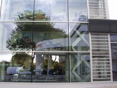 Diese Hebebühne verbindet die Verkaufsebene mit der Werkstattebene eines Motorradhauses. |