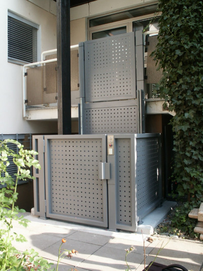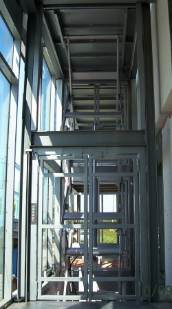 Hoch hinaus wollte ein Autohaus, zum Transport von Motorrädern über drei Geschossebenen. Der Hub beträgt gesamt 5800 mm |