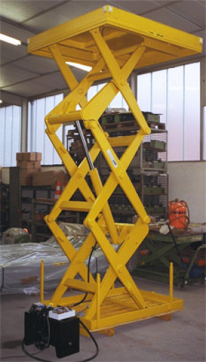In diesem Fall kommt die MBW-Dreifachscheren-Serie Typ QT zum Einsatz. Durch die Anordnung von 3 Scherenpaaren übereinander wird aus dem bestehenden Platzangebot die maximale Hubhöhe realisiert. |