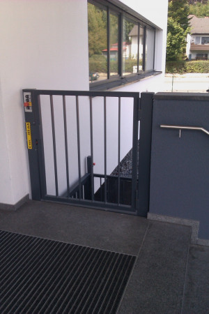 Serienhebebühne zum Be- und Entladen von kleineren Lasten, incl. Sicherheitszubehör wie Schutzgeländer und Portal-Absturzsicherung. |