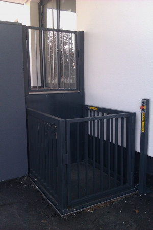 Serienhebebühne, modifiziert zum Aktentransport in einem staatlichen Hochbauamt. |