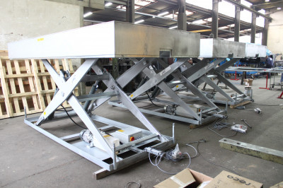 Diese Serienhebebühne ist bestimmt für den Einsatz vor einer Blechverarbeitungsmaschine |