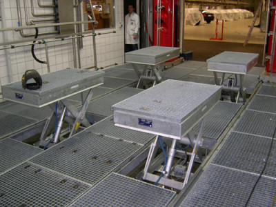 Hier wird eine Serienhebebühne eingesetzt als Be- und Entladehebebühne. |