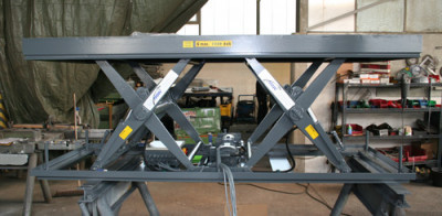 Tandemscheren-Hebebühne ... im späteren Einsatz zwschen zwei Ebenen zum Transport von lagen Bauteilen